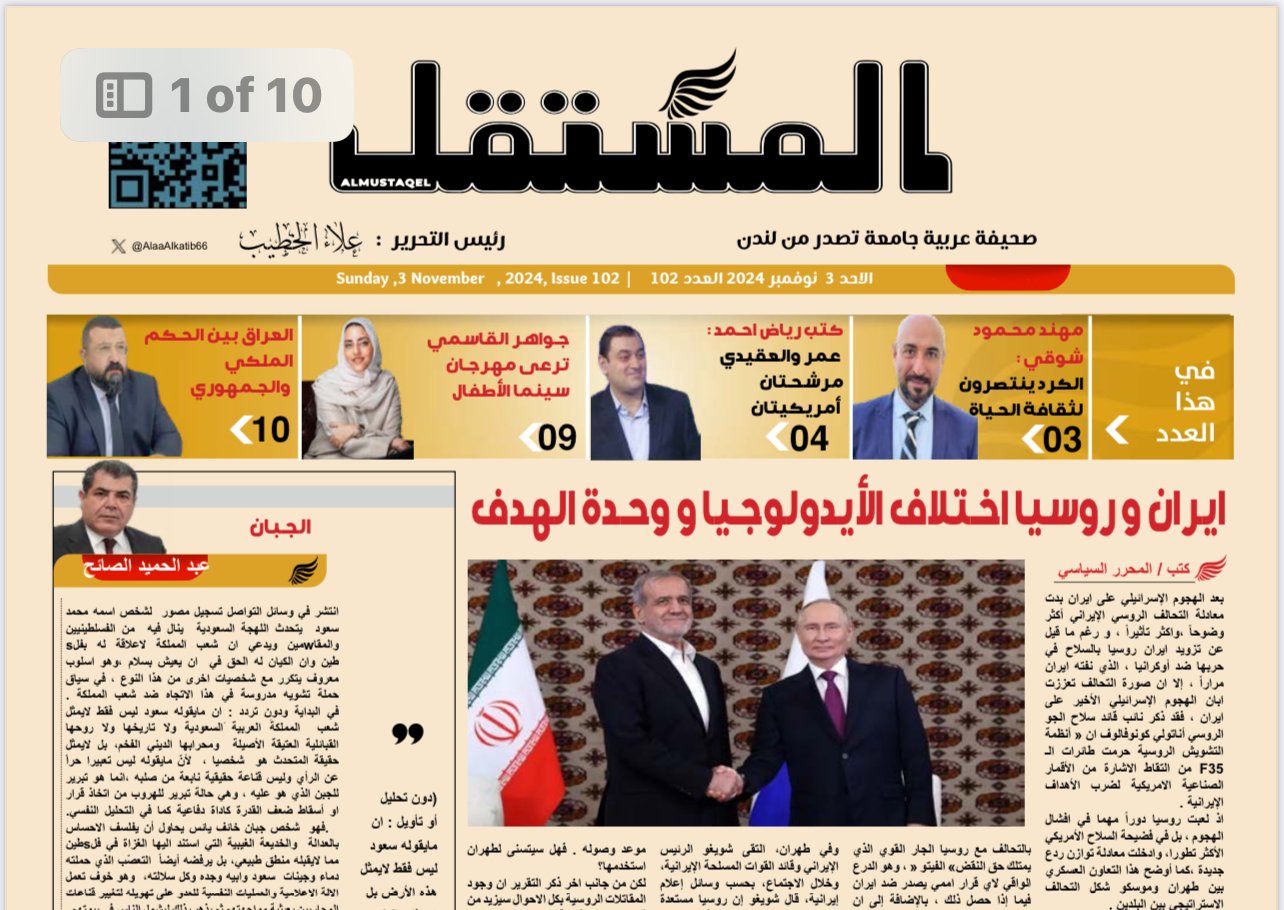 تصفح العدد 102 من المستقل نوفمبر 2, 2024 المشاهدات : 179 تصفح العدد 102 من المستقل تحليلات سياسية حوارات واخبار وكل ما هو جديد ومثير مشاركة المقال :