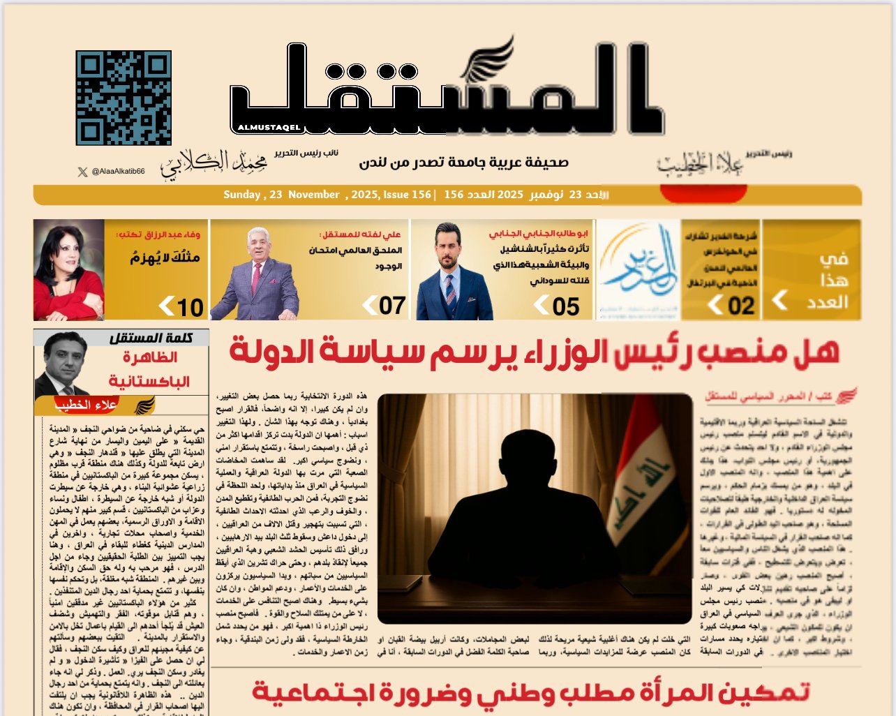 اقرأ العدد 156 من المستقل نوفمبر 23, 2025 المشاهدات : 59 https://drive.google.com/file/d/1XpEjAiXSoZ5Ik_6T9hZf4q-Q_yRRcXgX/view?usp=sharing مشاركة المقال :