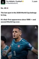 وأشادت صحيفة Marca بالأداء الفني للمنتخب، مركزة على دور المدرب خيسوس كاساس في بناء فريق منظم وحديث، فيما تناولت شبكة BBC Sport البعد الإنساني للإنجاز، مؤكدة أن التأهل وحّد الشارع العراقي. أما مجلة France Football فوصفت العراق بـ”الفريق الذي لا يملك ما يخسره”، محذرة من الاستهانة بقدراته في النهائيات.